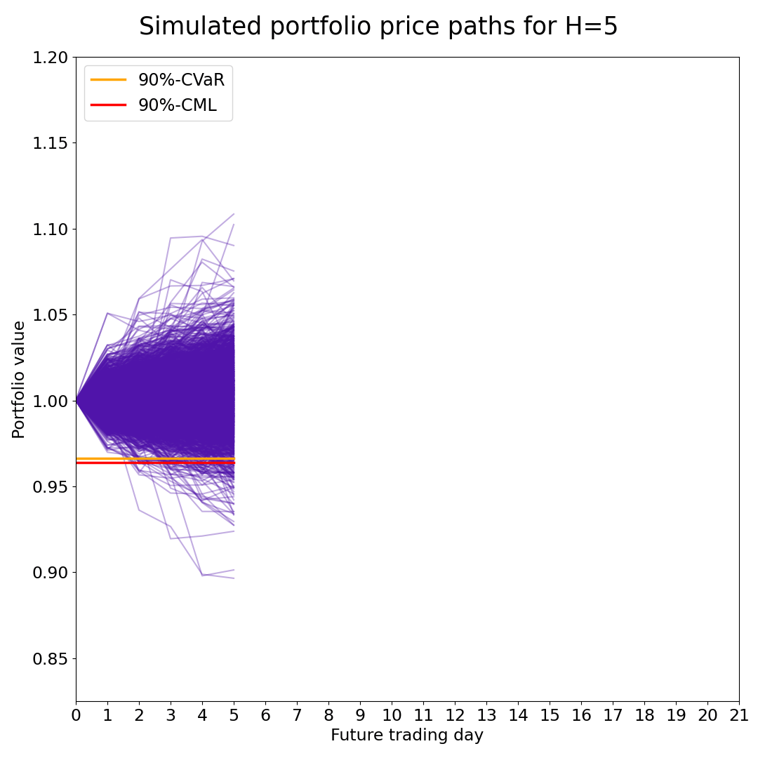 Abstract: This article introduces a new investment risk measure designed for the Fully General Investment Framework (FGIF), which is centered around fully general Monte Carlo simulation paths and their associated probabilities. The new risk measure is coined Conditional Maximum Loss (CML). It draws inspiration from drawdowns but adjusts for their practical shortcomings. The CML risk measure is dynamic because it focuses on the expected loss over the entire horizon between portfolio rebalancing times, not just the losses at the end of the rebalancing horizon. CML portfolio optimization problems can be solved using linear programming, similar to the popular Conditional Value-at-Risk (CVaR). In fact, we can formulate joint portfolio optimization problems where both CML and CVaR are minimized, while the portfolio’s expected return is maximized. This allows investment managers to both optimize the distribution at the end of the investment horizon as well as the portfolio’s path, making the portfolio more robust and minimizing the probability of experiencing stop losses or client withdrawals. The Python case study includes several practical examples of how the new investment risk measure can be optimized in combination with Sequential Entropy Pooling (SeqEP) views and stress testing.